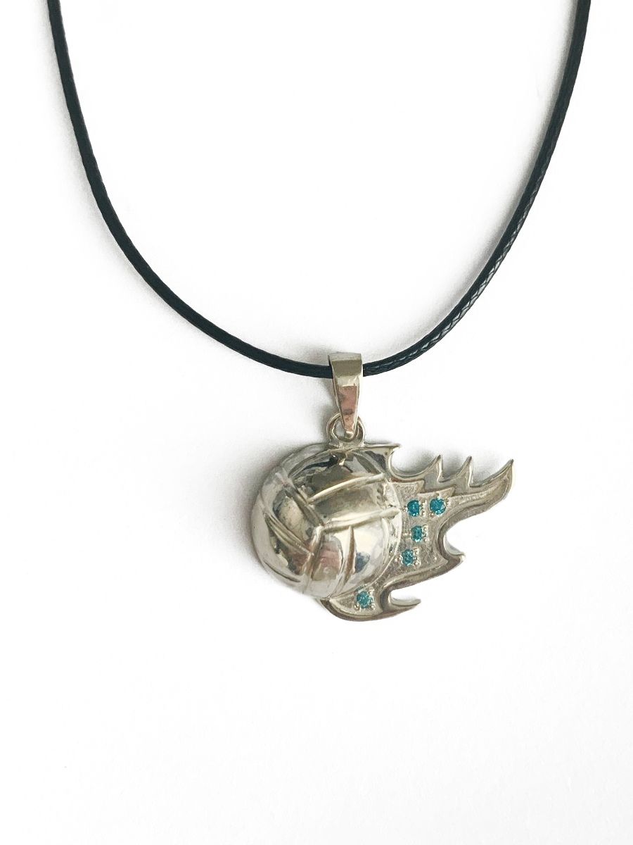 Кулон «Летящий мяч» самый динамичный из наших дизайнов, передающий всю энергию волейбола. Выполнен из серебра 925 пробы, вставки фианиты, размер 2,5 на 1,5 см без учета ушка.