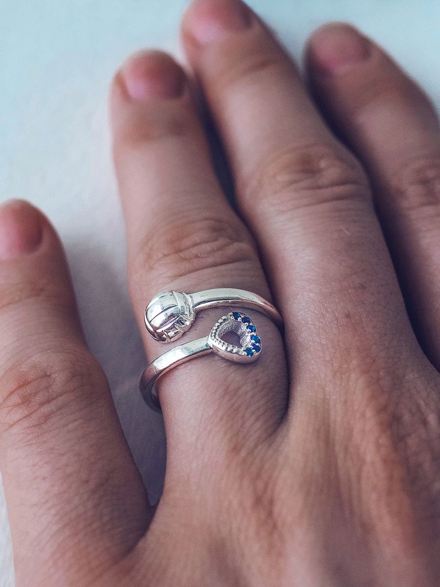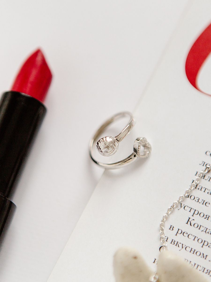 Кольцо представлено в трех вариантах - с белыми, голубыми или синими камнями, пожалуйста в комментирях к заказу укажите желаемый вариант.