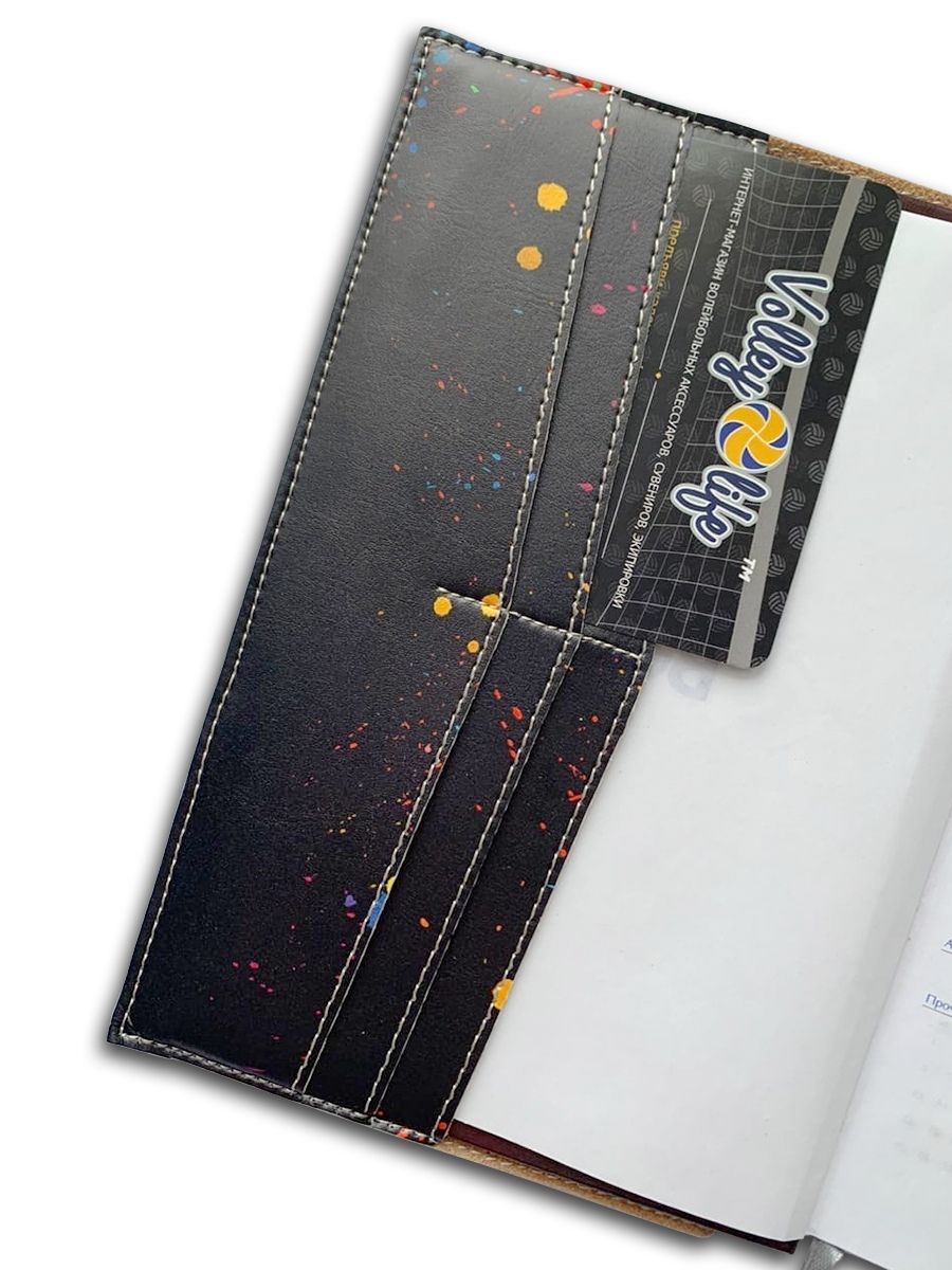 Также внутренняя часть обложки оснащена небольшими карамашками под календарики, визитки или просто записки.