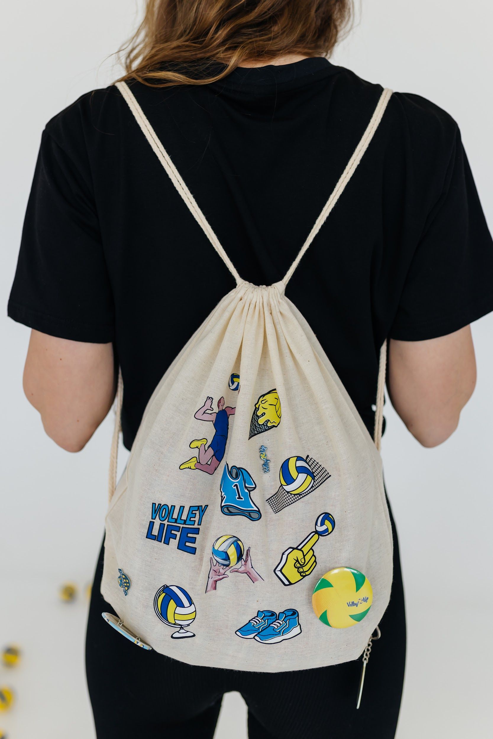 Прочный,легкий холщовый рюкзачок с яркими волейбольными стикерами станет незаменимым аксессуаром! Можно взять с собой в путешествие, на пляж, в поход по магазинам, на тренировку или просто на прогулку.