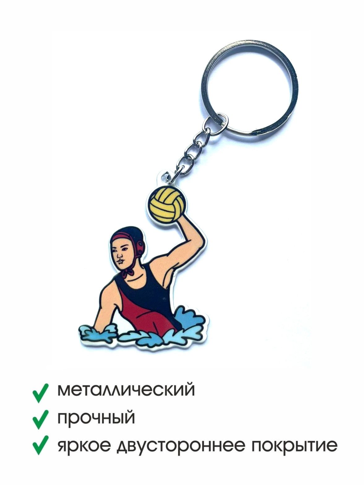 Брелок металлический двусторонний плоский Водное поло станет прекрасным памятным подарком как взрослому, так и ребенку.